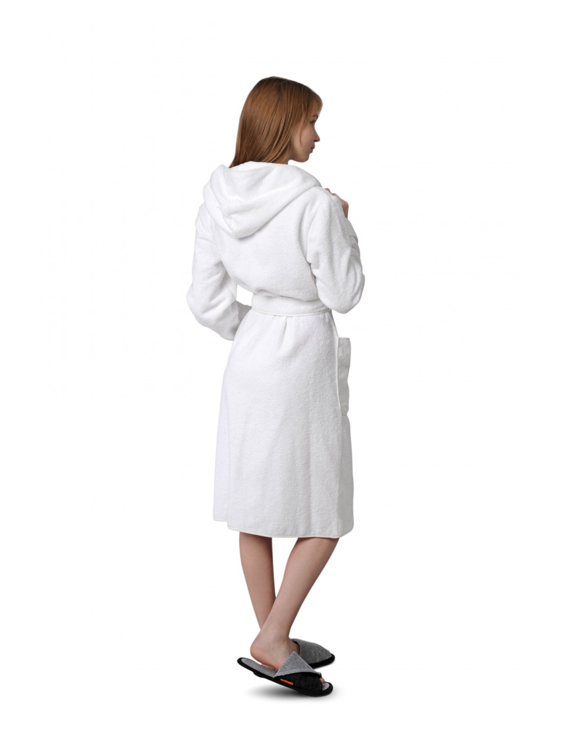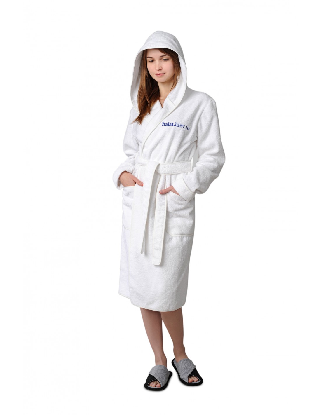 Головна Одяг Халати Білий Махровий Жіночий Халат з Капюшоном (100% Бавовна)