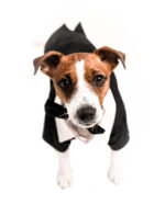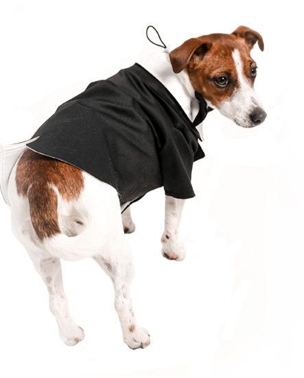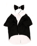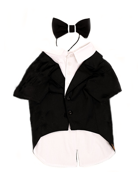 Стильний костюм для собачок «Джентльмен». В комплекті – фрак і метелик. Матеріал – габардин, бавовна. Фрак на липучці, дуже легко одягається. У такому вбранні ваша собачка буде ошатною.