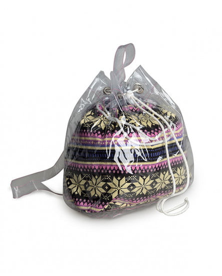 Прозорий рюкзак-мішок з ПВХ від ТМ «FeltForYou». Якісний ПВХ і міцний мішочок з оксфорда всередині робить ставку на модні віяння Європи, де прозора мода повним ходом набирає обертів серед сміливих і не закомплексованих громадян.