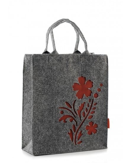Поєднання сірої повсті та оздоблення з червоних квітів, робить цю сумку особливою. З нею Ви будете почувати себе стильною та чарівною.