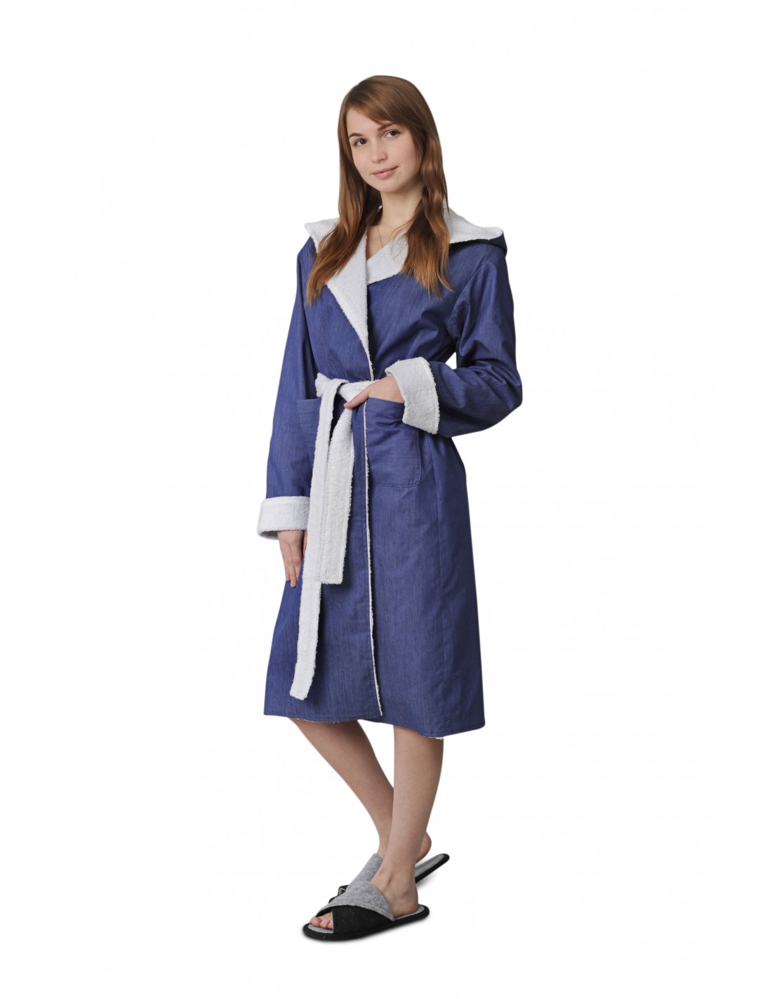 Забудьте про розтягнуті футболки чи безформні халати. Наша новинка — двосторонній джинсовий халат з капюшоном — створена для жінки, яка хоче виглядати стильно, навіть коли просто п’є ранкову каву або відпочиває після роботи.